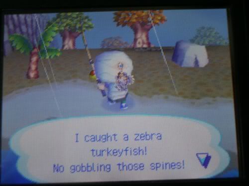 昨天是我玩動森以來第一次下雨~一早起來發現的~不過到下午我再看的時候雨已經停了,好險我早起,還有釣到一些之前沒看過的魚,除了下面這隻還有彩虹魚ˇ